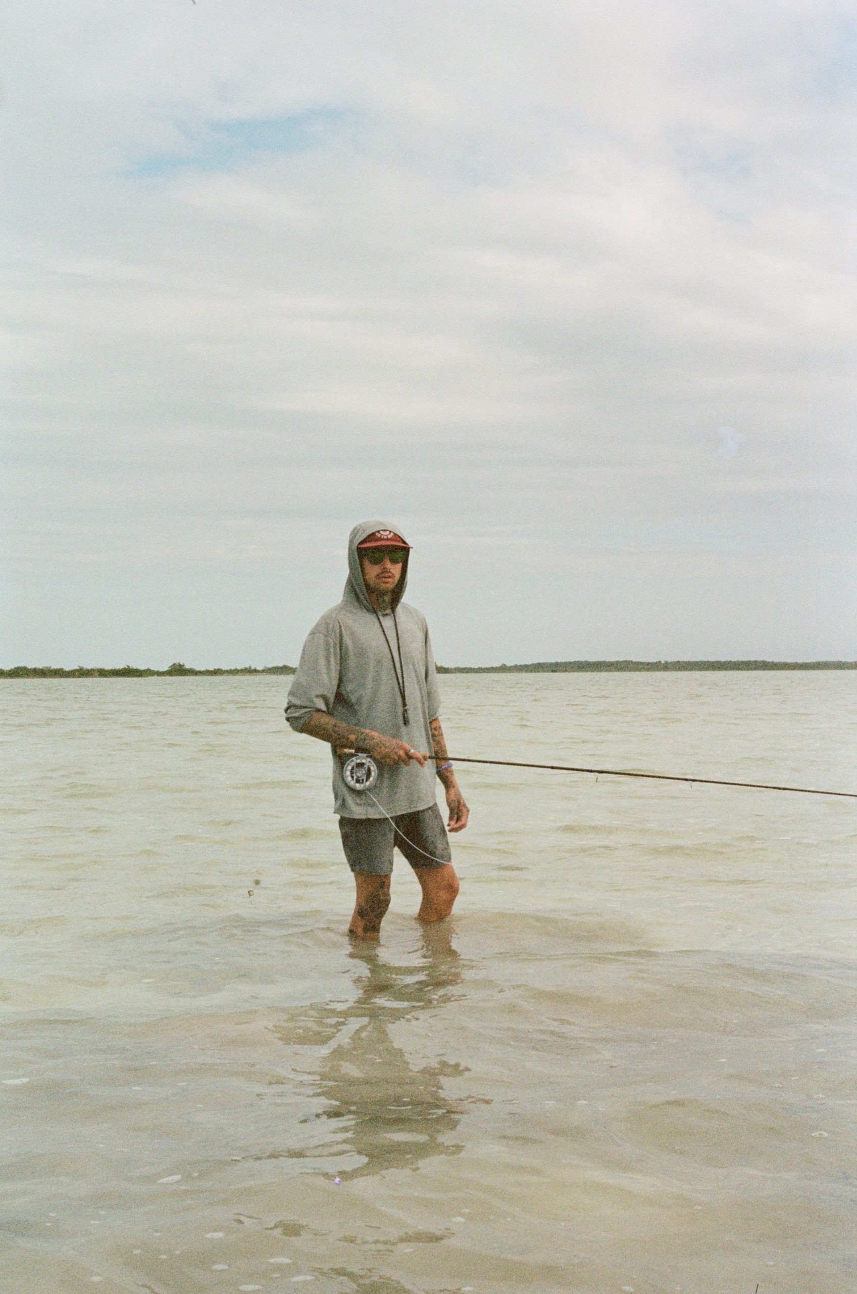 The last day we were there, we decided to forget about the damn Permit and just have fun catching Bonefish. And so we spent the day catching bones and drinking the Belikins that were packed in our coolers. It was a great day. I was more than content. But I could tell Aaron was a little bit disappointed he hadn’t been able to connect with one of those big Permit. We had had our shots, that’s for sure, it just didn’t happen. Just before heading back to camp, Aaron got into another nice bonefish which I gladly watched him fight before I decided to paddle down a ways looking for a bone of my own. But then – I saw them–those prodigal Permit tails. I knew this was my last chance at catching one, so I took my time. I got off my paddle board and crept in the water slowly.