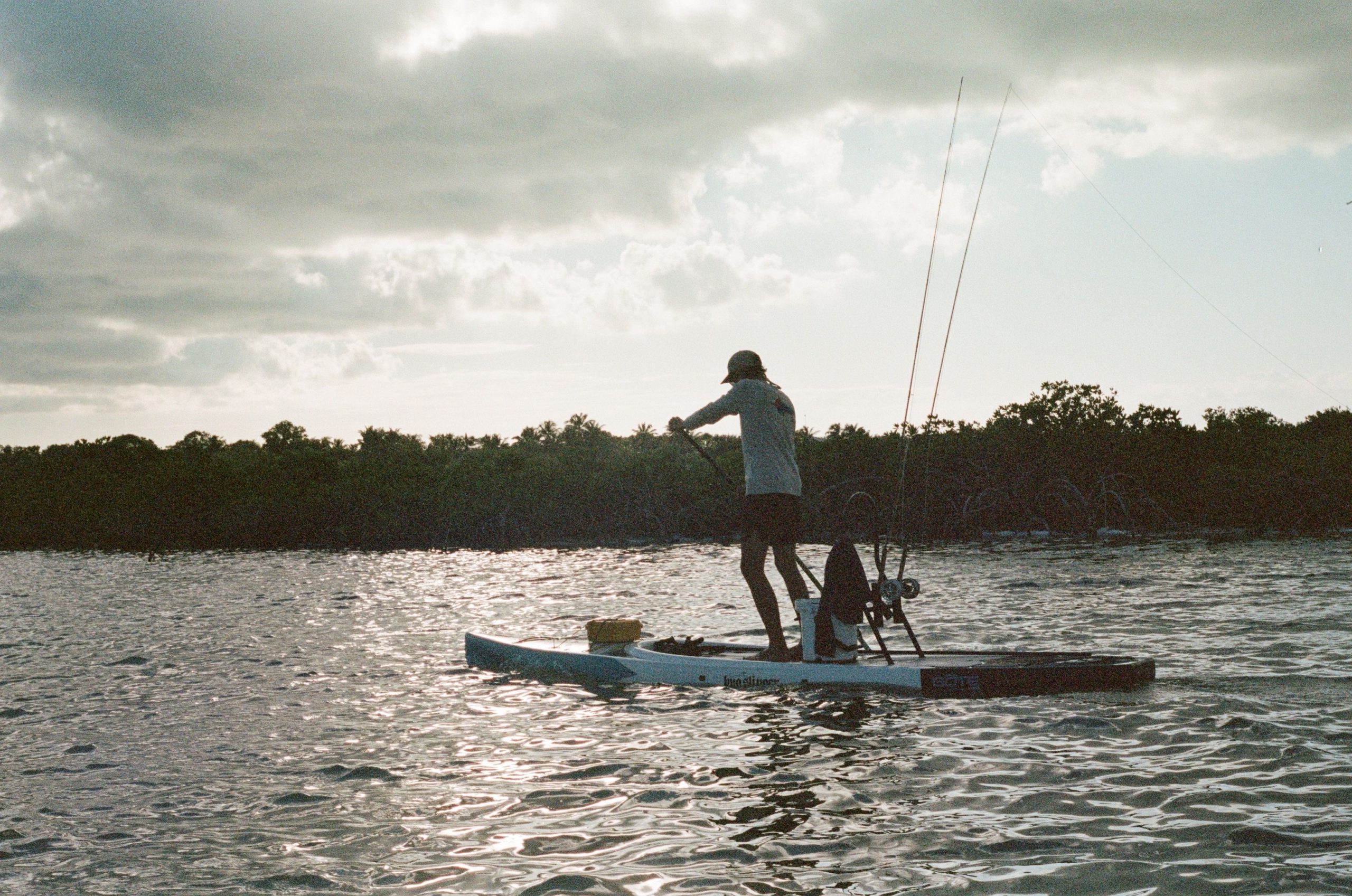 And then, on our way back to camp, as the sun was setting, we saw them. Two or three Permit tails were sticking out of the water, as their noses were buried in the sand digging for crabs. We tried to be as stealthy as possible, but we quickly learned that it’s pretty damn hard being stealthy on a paddle board. You had to put your oar down between your feet, pick up the anchor and thread it through a narrow hole, and then get your rod out. By this time the Permit had heard us clunking around and were moving away from us. Permit have a reputation of being one of the hardest and most elusive fish to catch and I was beginning to see why.